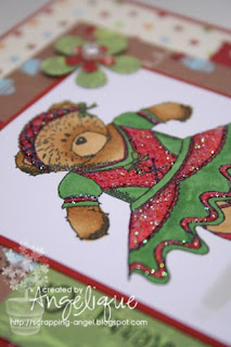 Angelique, I love this card! Your teddy is so dang cute with her dancing shoes! Love the colors you used, paper and bling and it all adds up to one gorgeous card!